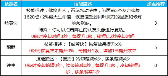 谈到贝叶灵符,我就需要来谈谈它的修炼点数了。如何来分配贝叶灵符的技能点,这是很重要的,避免了你走很多的弯路,同时也会带来很多方便。作为一个60+的花花,身上佩戴2个贝叶灵符是必不可少的。第一个是你随身携带的。这个贝叶灵符的属性点是需要加在加血和持续加血这两个技能上面。记住,救人的技能一定不要点属性点。而第二个贝叶灵符是放在包包里的,好随身转换。如果你的帮会不打架,或者你没有仇人的话,这条可以免看了。因为第二个贝叶灵符是把属性点全加在救人的上面。在打架的时候,一个花需要花费5秒来拉一个人,或许你还没把人家救起来,自己就已经死了。所以,这个叶子你不需要把它练到多高级,只需要刚刚点满5个属性点就可以了!