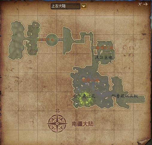 上古大型PVE副本由三个大型区域组成,每个区域都有一个BOSS看守,分别是:看守的猿猴部落【汉江巨猿】、看守的孢泽林地【般罗曼陀花】、看守的石笋坡【雅鲁藏双头蛟】。各部分间有空气墙间隔,玩家需要击倒上一区域的看守BOSS,才能进入下一区域,BOSS所在区域,如下图所示位置: