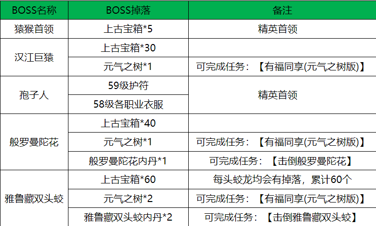 四、 上古大型PVE副本奖励及BOSS掉落: